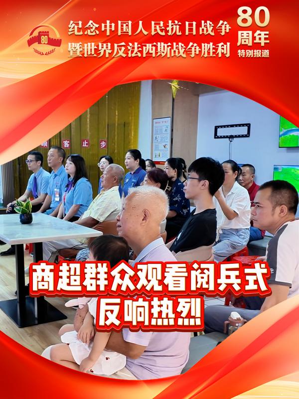 9月3日上午,潮州市區(qū)大潤(rùn)發(fā)超市彩電銷(xiāo)售區(qū)成為一處“臨時(shí)觀禮點(diǎn)”,不少市民坐在休息區(qū)觀看盛大的閱兵式。