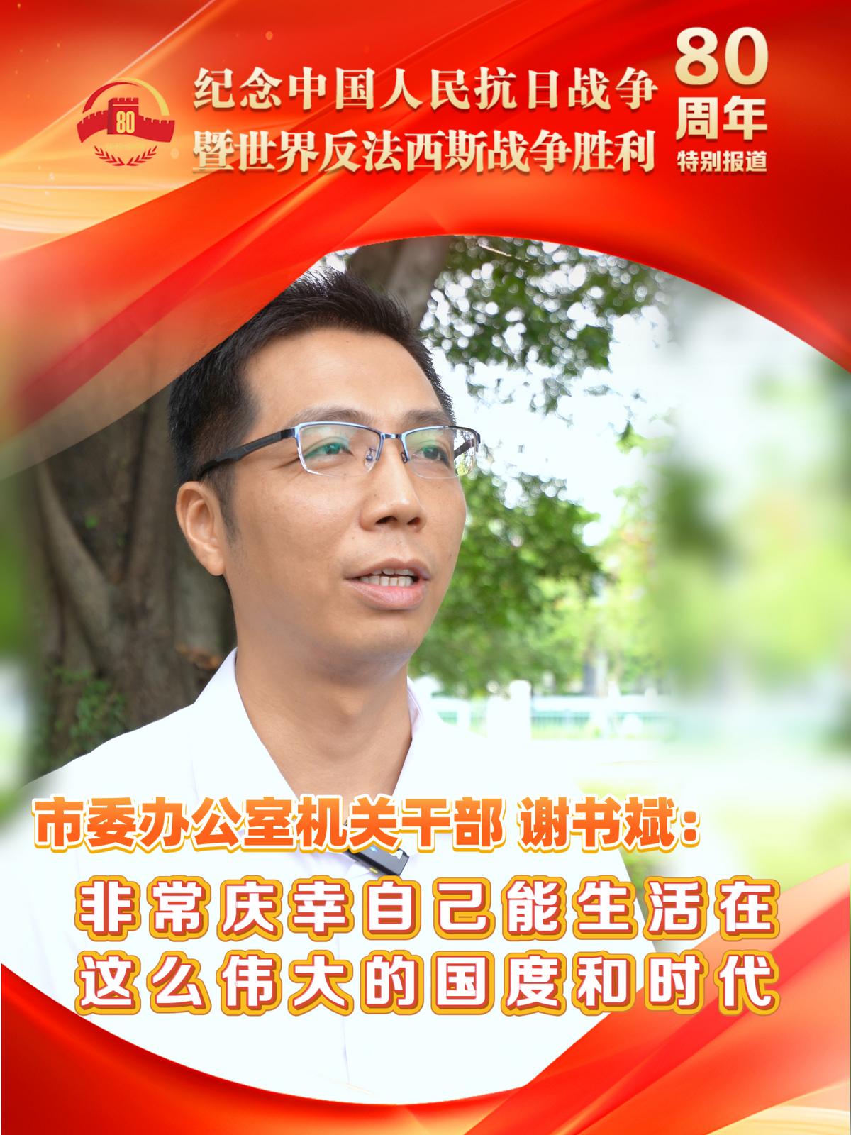 市委辦公室機(jī)關(guān)干部謝書(shū)斌:今天的閱兵式,充分展現(xiàn)了人民軍隊(duì)維護(hù)世界和平的強(qiáng)大能力和堅(jiān)定決心,讓我再一次感受到祖國(guó)的自信與強(qiáng)盛。我非常慶幸自己能生活在這么偉大的國(guó)度和時(shí)代。