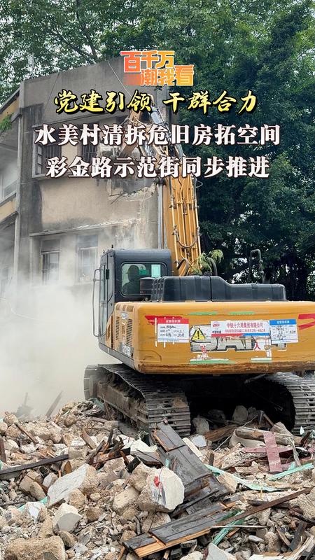 黨建引領,干群合力。潮安區彩塘鎮水美村清拆危舊房拓空間,彩金路示范街同步推進。