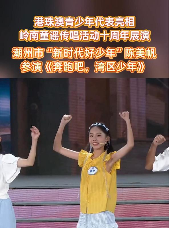 7月24日晚,“童聲耀灣區 拾夢向未來”嶺南童謠傳唱活動十周年展演在廣州中山紀念堂舉行。其中,潮州“新時代好少年”陳美帆參演《奔跑吧,灣區少年》節目。