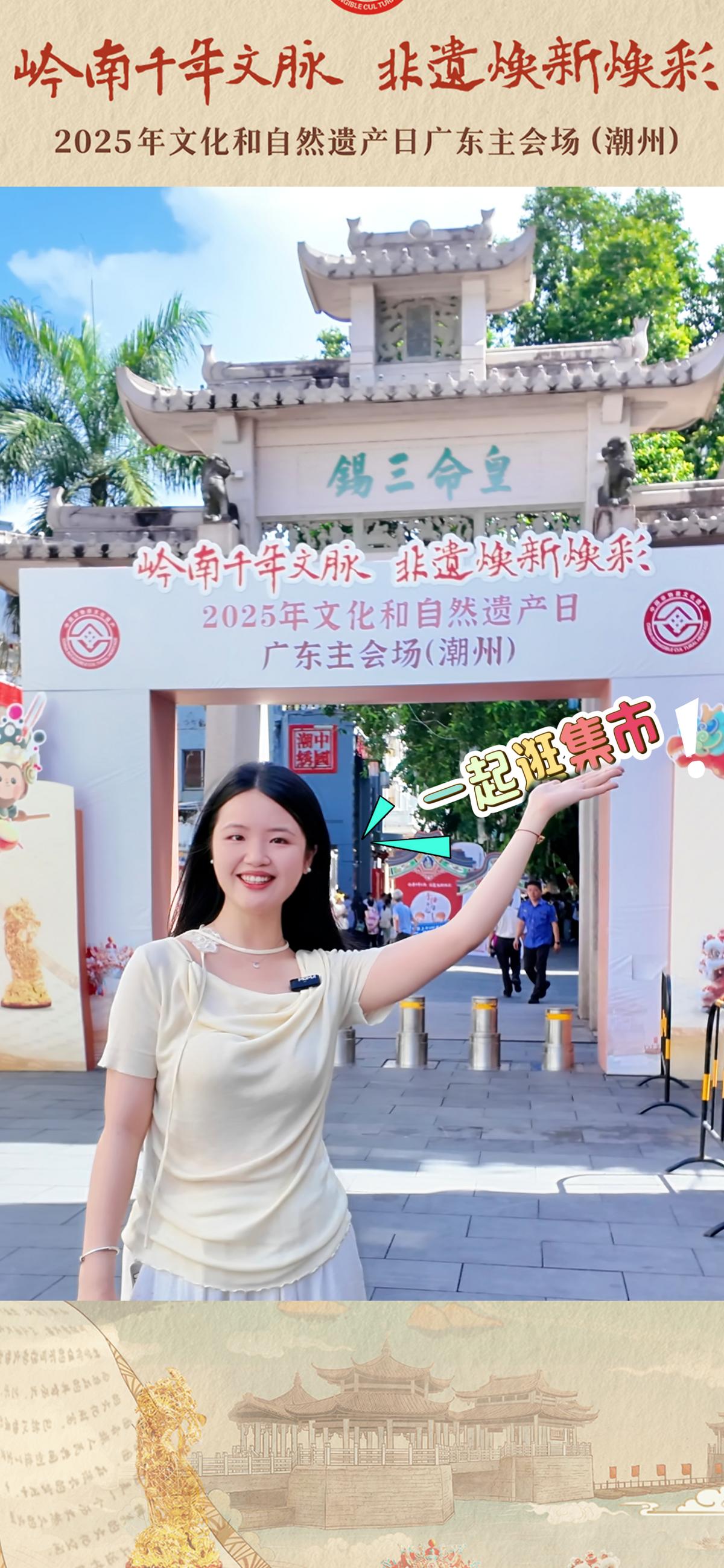 2025年文化和自然遺產日廣東主會場(潮州)活動在潮州古城啟動,跟著主播一起逛廣東省第六屆非遺購物節非遺市集。