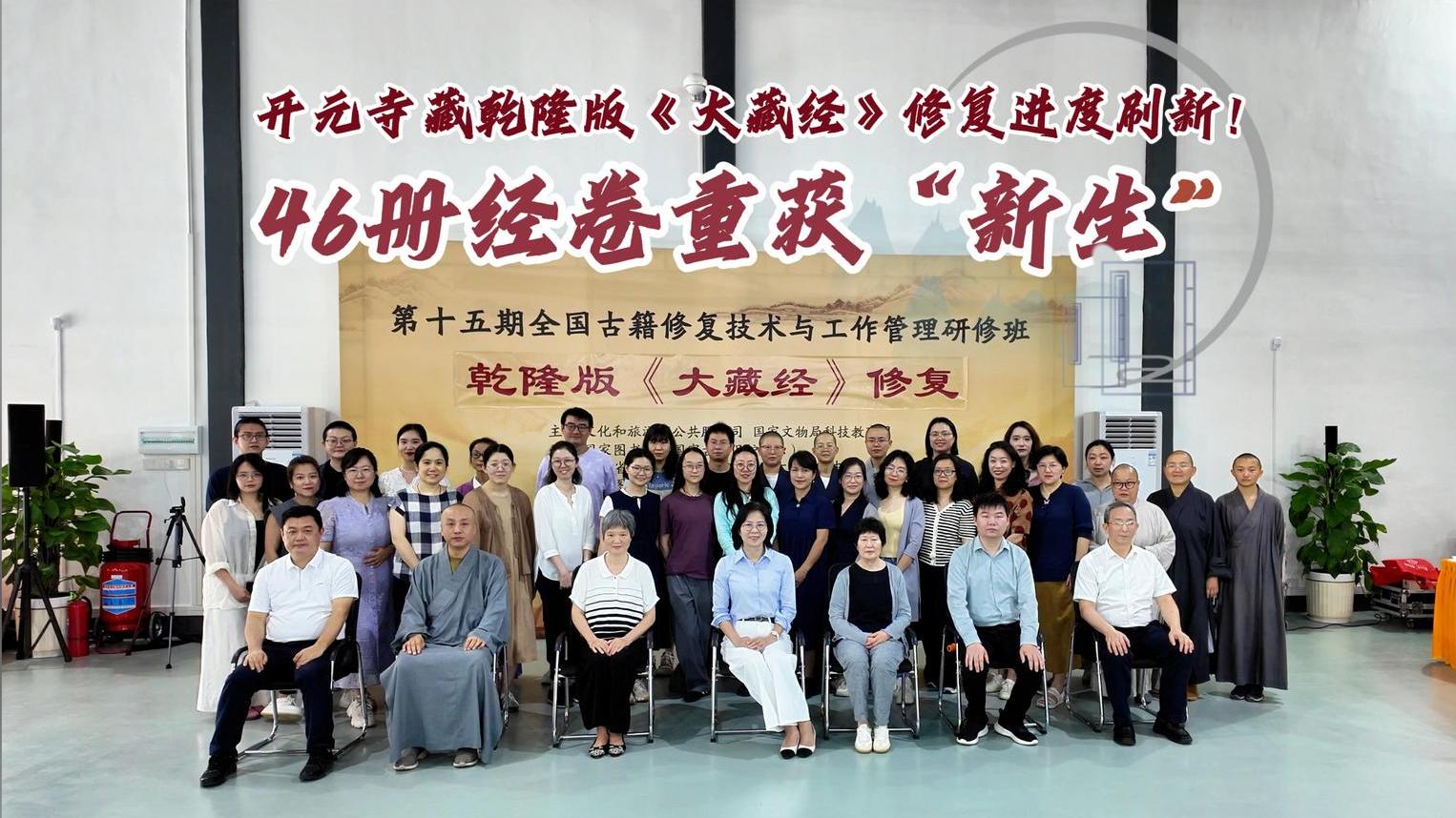 開元寺藏乾隆版《大藏經》修復進度刷新!46冊經卷重獲“新生”。5月30日,第十五期全國古籍修復技術與工作管理研修班結業儀式在潮州開元寺舉行。