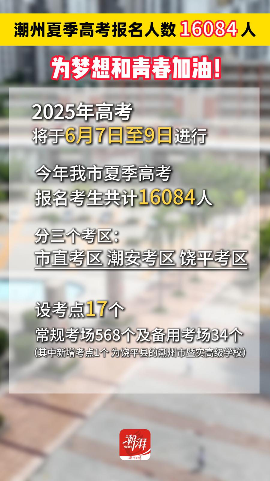 潮州夏季高考報名人數16084人,為夢想和青春加油!