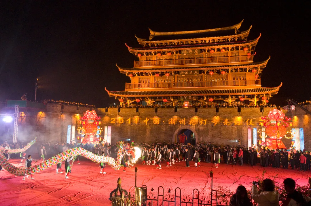 據民間傳說,潮州唐朝已有觀燈、鬧元宵活動。明嘉靖四十五年(1566)新安余民刊本《荔鏡記》取材于潮州民間傳說,第六出《五娘賞燈》中多處描寫元宵夜潮州游花燈情景。清代吳震方《嶺南雜述》有“潮州燈節有魚龍之戲,又每夕各坊市扮唱秧歌,與京師無異。”嘉慶《澄海縣志》記載“十一日夜起,各神廟張燈,士女嬉游,放花爆,打秋千,歌聲達旦”。清代元宵游花燈以潮州最為有名,尤以自正月十五至二三月方歇的廟會為佼佼者。
