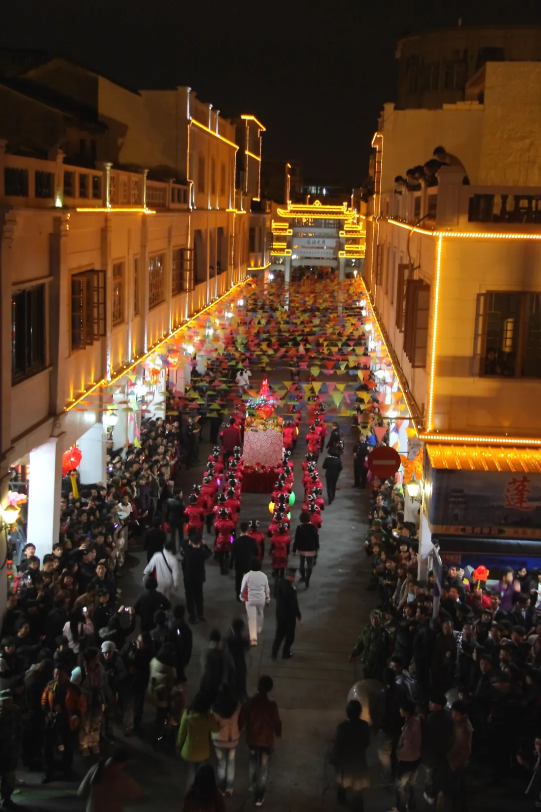 大街小巷、行鋪、院落、祠堂等張燈結彩,掛各式各樣的蓮花燈、梅花燈、鯉魚燈、走馬燈等。是晚,潮人無論男女老幼,祭祖、用晚餐后,便上街游覽賞燈,猜燈謎,到處人山人海,歡聲笑語,熱鬧歡樂。