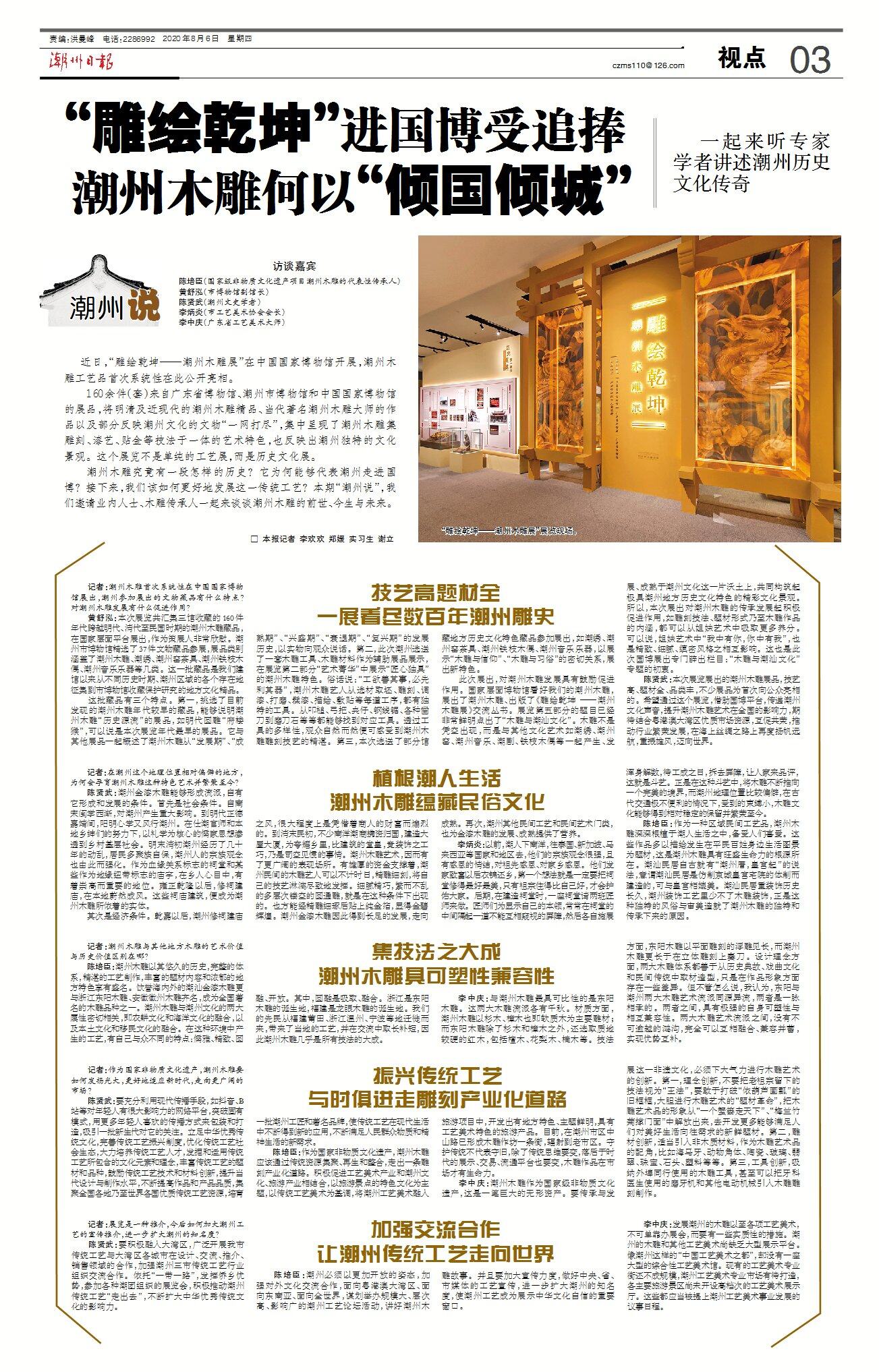 記者:潮州木雕首次系統性在中國國家博物館展出,潮州參加展出的文物藏品有什么特點?對潮州木雕發展有什么促進作用?
