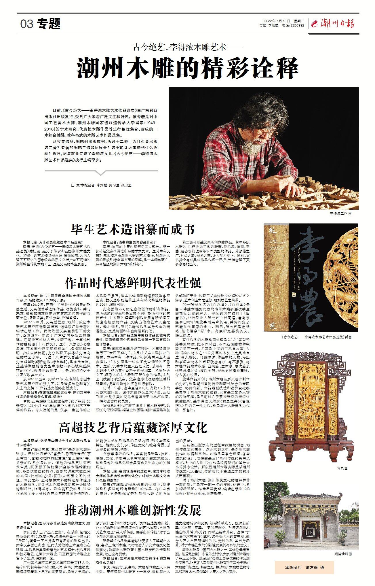 本報記者:在編輯該書的過程中,您對李得濃大師的作品有沒有新的體會?對潮州木雕文化有什么新的感悟?