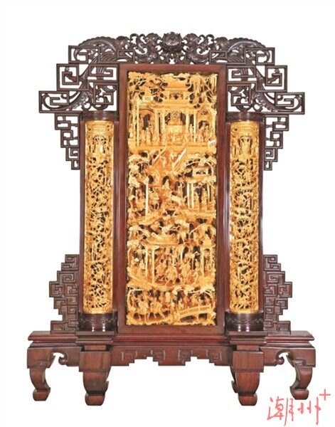 此件作品開創(chuàng)了潮州木雕在屏風設(shè)計制作的先河,也是潮州首例傳統(tǒng)和現(xiàn)代結(jié)合的表現(xiàn)手法,格調(diào)清新。作品雕刻技法和紋飾變化都是集萃了潮州木雕的精髓,尤其是文武身人物的衣飾圖案,是目前對幾乎要被遺忘的傳統(tǒng)紋式的挽救,是李得濃大師繼《憩息之舟》《喜悅歸》之后的另一件力作,也是潮州木雕精品力作的一張名片。