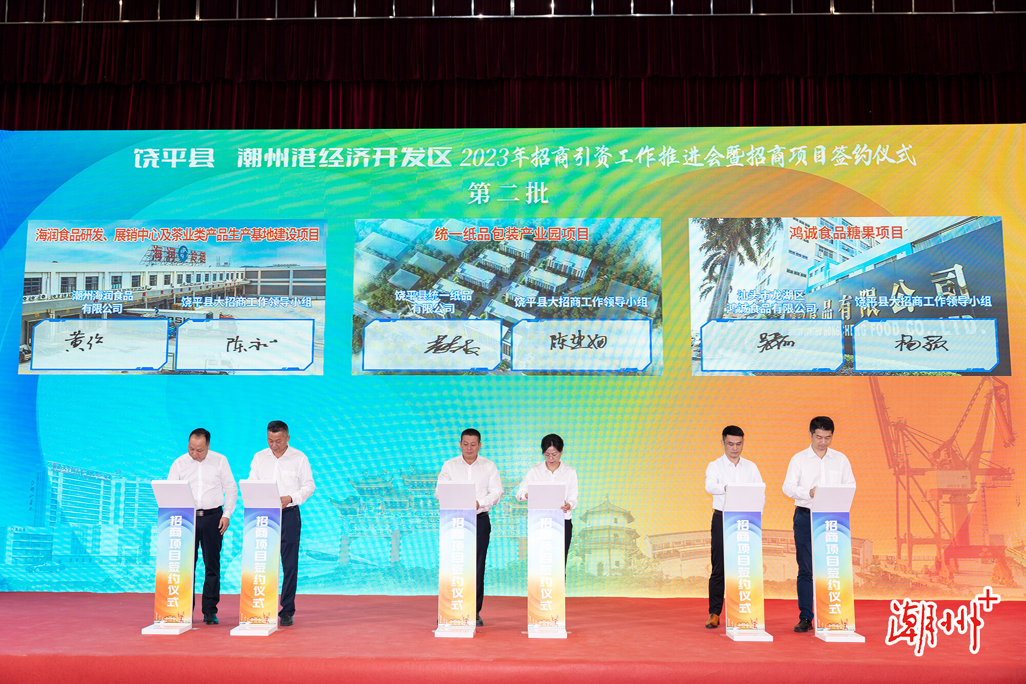 近日,饒平縣、潮州港經濟開發區舉行2023年招商引資工作推進會暨招商項目簽約儀式,現場簽約項目9個,總投資32.57億元,涵蓋文旅、食品、能源、制造業、農業等多個領域。