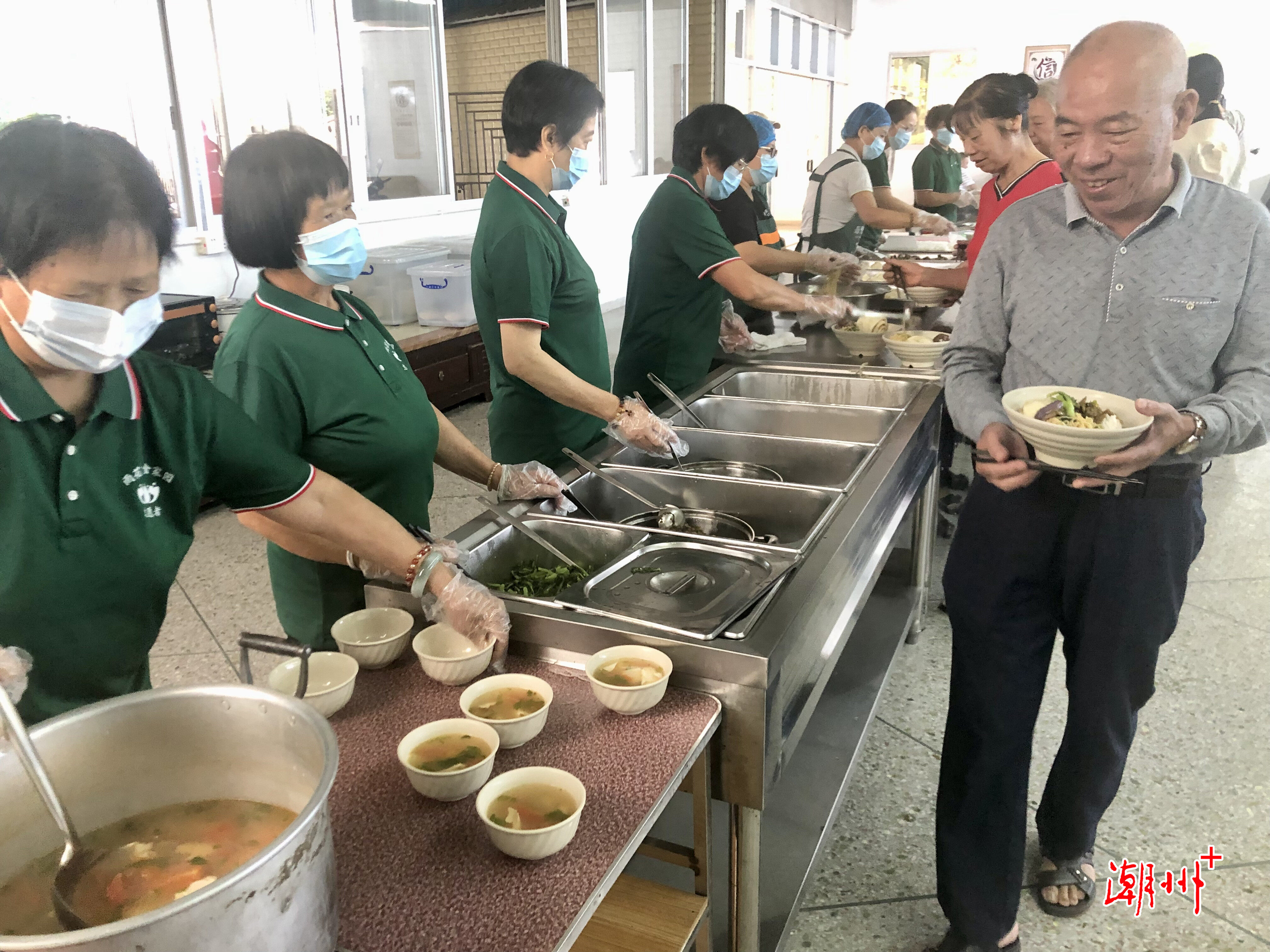 長者食堂內(nèi),老人們正有序打飯。