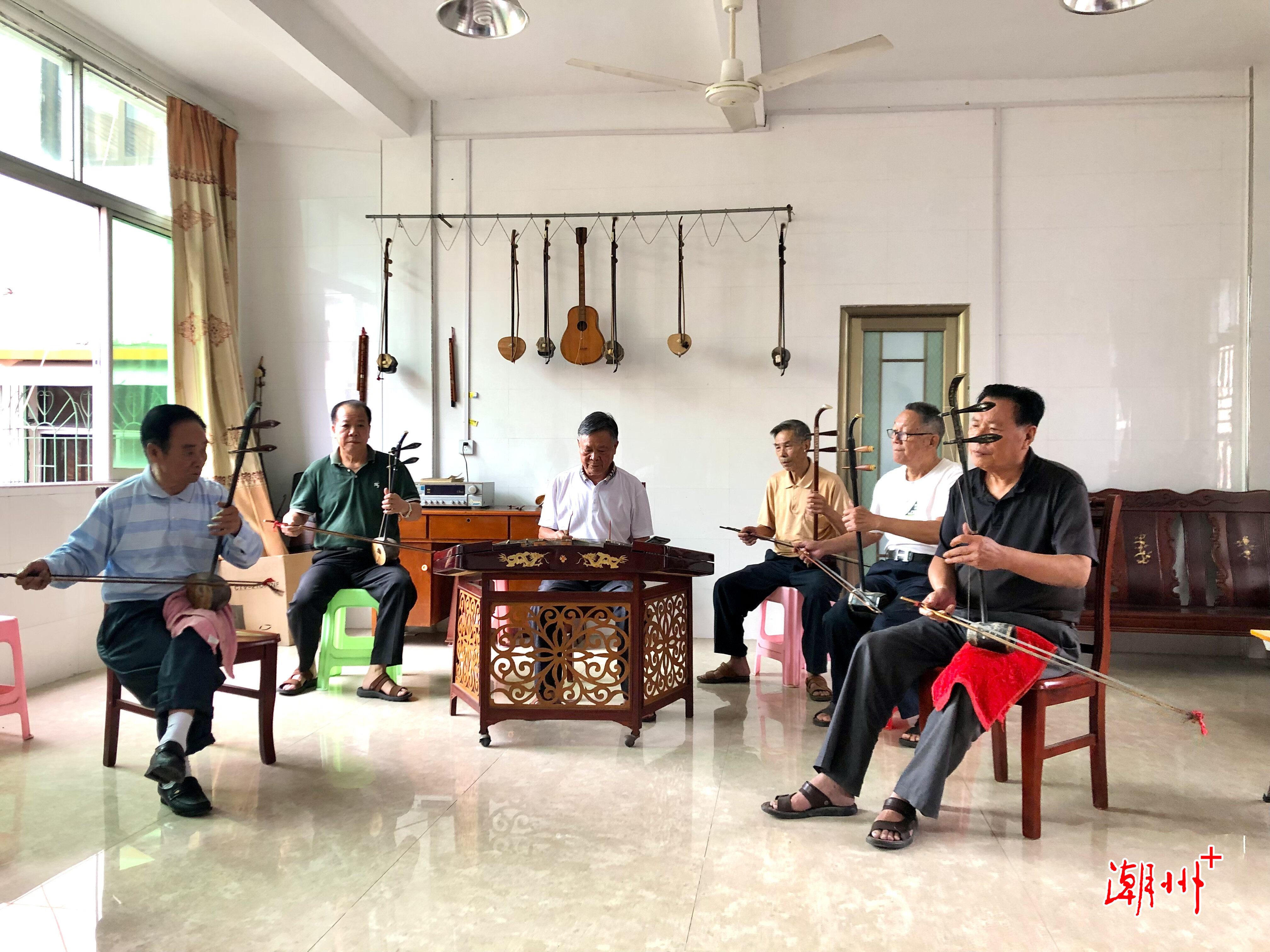 三中村文化活動中心內(nèi),村民正彈奏樂曲。