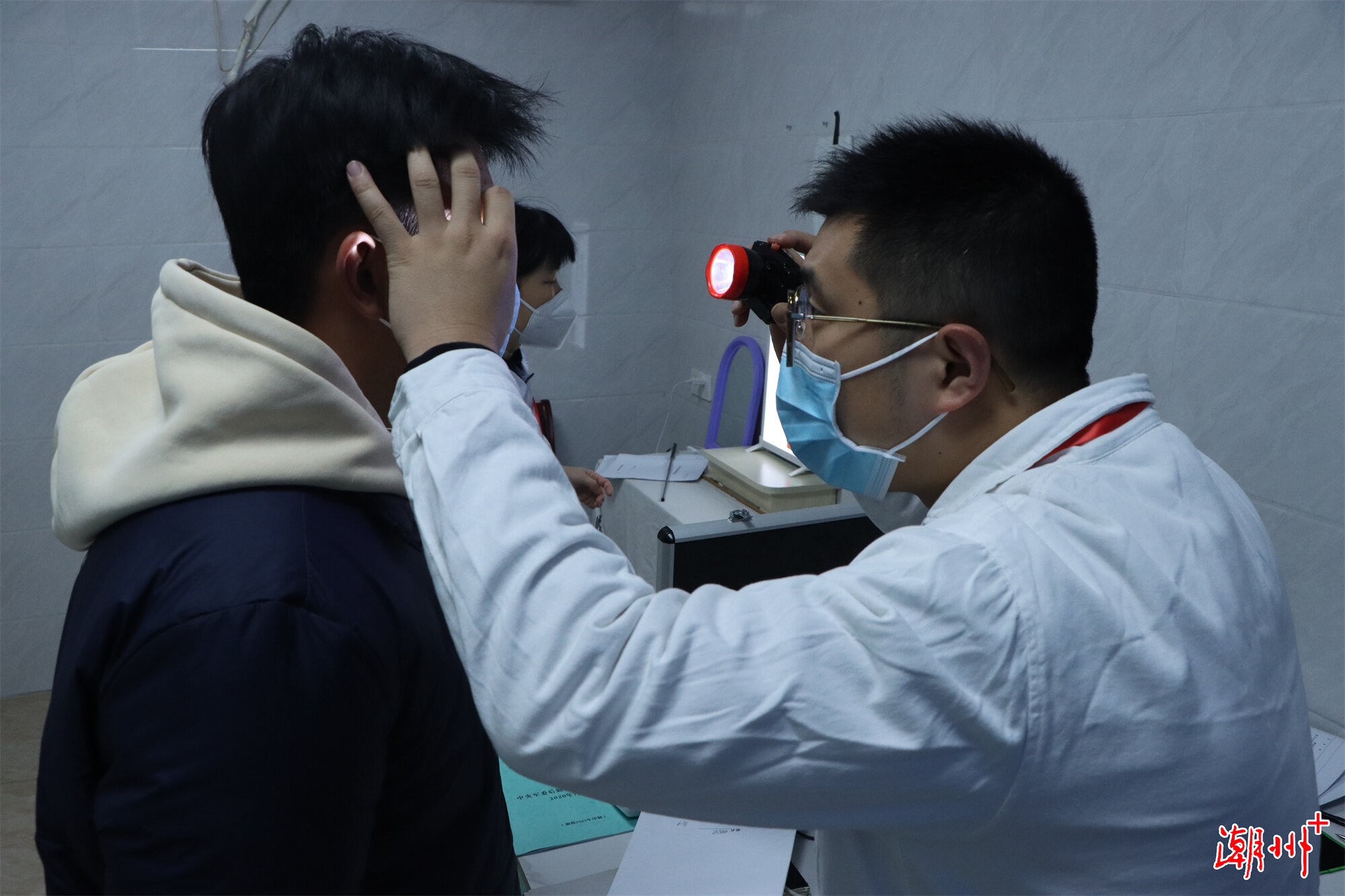 在湘橋區(qū)人民醫(yī)院征兵體檢現(xiàn)場,應征青年在工作人員的引導下進行身份核驗和信息登記。隨后,應征青年佩戴好口罩分批次進入體檢區(qū)域,有序接受檢查。湘橋區(qū)征兵辦組織體檢工作人員嚴格按照體檢標準,規(guī)范體檢程序,切實做好檢查和登記工作,確保檢查結(jié)果真實有效。