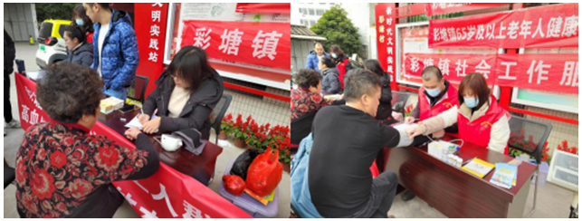 新桃換舊符,健康迎新春。另一邊,彩塘衛(wèi)生院醫(yī)護人員為現(xiàn)場老年人提供免費體檢服務,健康咨詢、測量血壓、抽血檢查“一條龍”服務,同步開展健康宣講活動,介紹“三高”等基礎疾病的日常預防知識和倡導健康生活方式。?