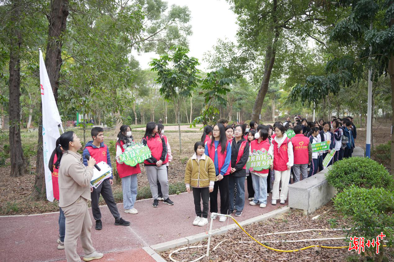 在隨后的綠美科普教育活動中,饒平縣林科所的工程師帶領志愿者來到自然環境中,詳細介紹每種樹木名稱的由來以及不同植物的特點,讓大家近距離感受自然生態與人工手藝結合的園林藝術之美,厚植植樹護綠意識。