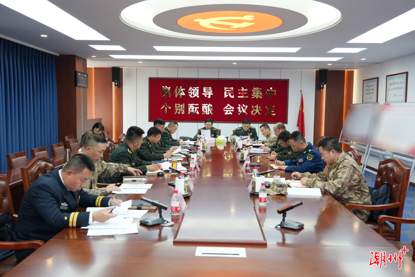 會議傳達學習上級黨委會議精神;劉旭東作工作報告,他指出,2023年,潮州軍分區注重舉旗鑄魂,確保思想政治引領更加有力;注重練兵備戰,催生打贏能力不斷提高;注重主責主業,推進動員質效有效提升;注重保障打贏,推動后裝建設始終向戰;注重規范治理,打牢發展基礎基層夯實;注重軍地協調,促進雙擁共建有所作為;注重黨建工作,加強作風建設成效明顯。