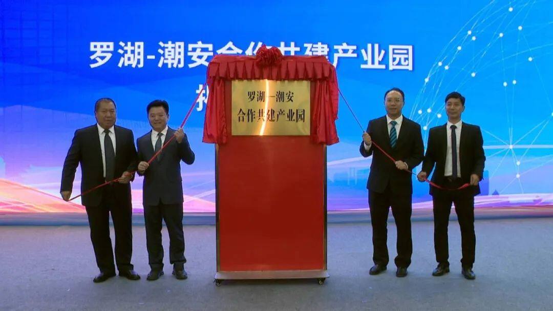 會上,與會人員一同觀看潮安區招商引資總結視頻,副區長李漢鈿匯報2023年招商引資工作開展情況,布置2024年招商引資工作;區招商先鋒一隊隊長魏旭平、重點招商企業代表分別作表態發言;潮安區政府與深圳羅湖區政府簽訂聯合招商協議;潮安區政府與重點招商企業簽訂投資協議;區委副書記、代理區長陳創陽、羅湖區副區長肖嘉睿與深圳對口幫扶協作潮州指揮部駐潮安工作組組長孫祜共同為羅湖-潮安合作共建產業園揭牌。