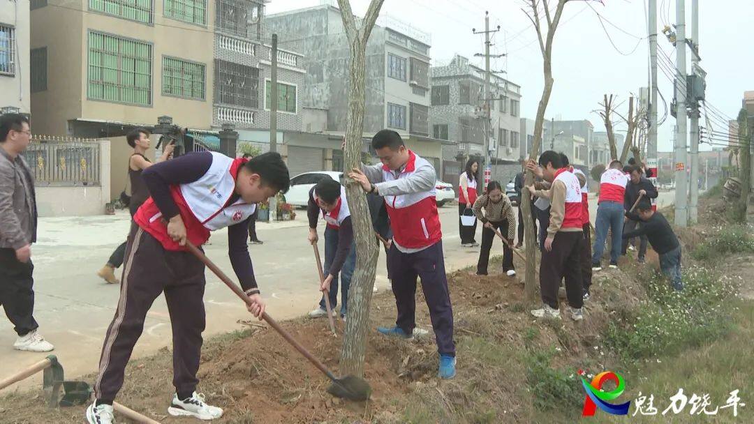 當天,參加啟動儀式的領導還前往高堂鎮前寮村開展植樹護綠志愿服務活動。植樹現場,大家分工協作,有的揮鍬鏟土,有的扶直苗木,有的填土澆水……合力種下一株株樹苗,以實際行動助力綠美饒平生態建設。