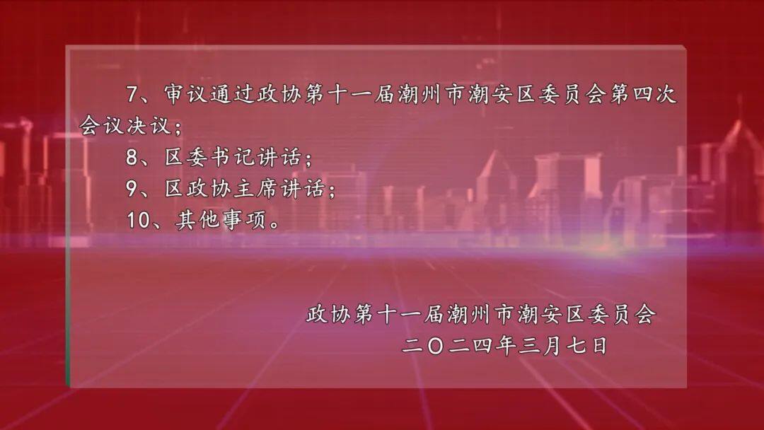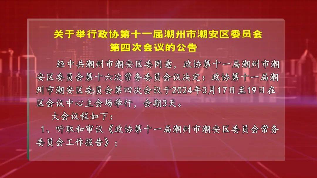 關于舉行政協第十一屆潮州市潮安區委員會第四次會議的公告