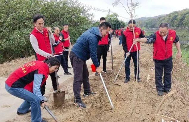 在第46個植樹節(jié)來臨之際,海山鎮(zhèn)聯(lián)合縣工商聯(lián)、揭陽市饒平商會開展植樹活動。