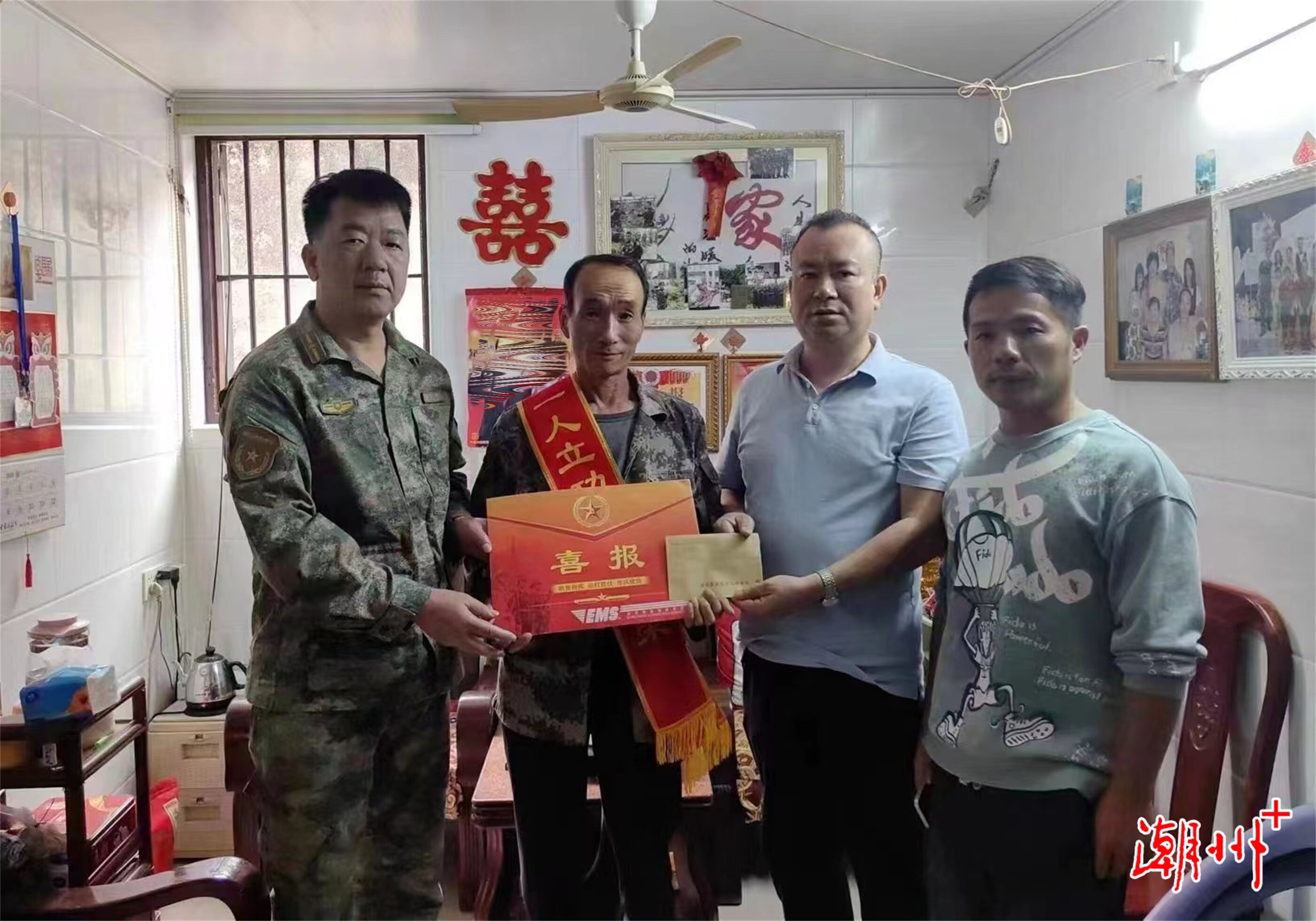 在新塘鎮(zhèn)現(xiàn)役軍人張鳳城家里,慰問組一進門就給張鳳城父親披上綬帶,接過兒子的三等功喜報,張鳳城父親臉上洋溢著無比激動的笑容?!案兄x您培養(yǎng)了這么優(yōu)秀的孩子,他是部隊的驕傲,也是饒平的驕傲,更是你們?nèi)业尿湴?!沉甸甸的軍功章背后是你們默默支持與堅守?!笨h人武部閆明對張鳳城父親親切的說道,同時希望現(xiàn)役軍人家屬能夠一如既往支持子女在部隊安心服役,鼓勵他們再創(chuàng)佳績、再立新功。