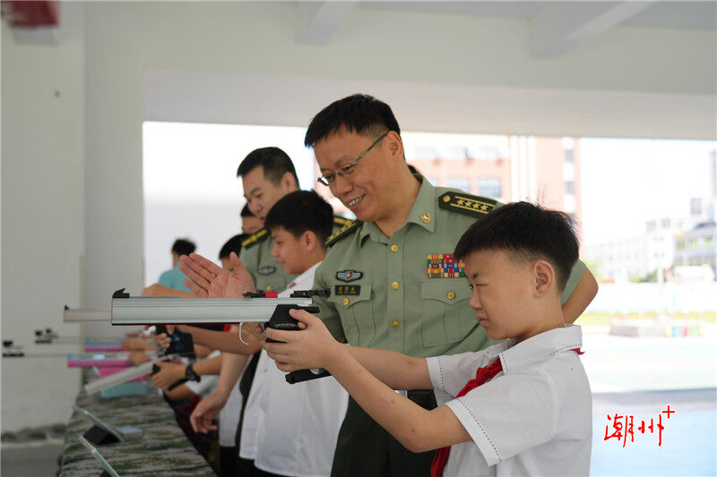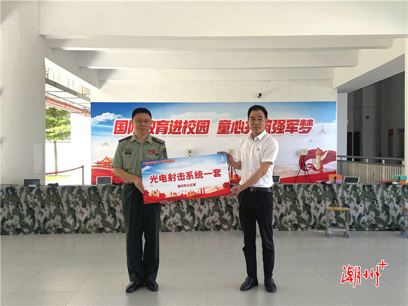 在市綿德小學,潮州軍分區政治工作處聯合市綿德小學、市光電射擊協會開展“國防教育進校園 童心共筑強軍夢”主題活動,周厚成代表軍分區向市綿德小學贈送一套光電射擊系統,并出席了校2023級入隊儀式。活動中,經過系統教學后,孩子們躍躍欲試,十分感興趣,在軍分區官兵手把手指導下,他們舉槍、瞄準、扣動扳機、射擊等動作逐漸規范,歡呼聲此起彼伏。