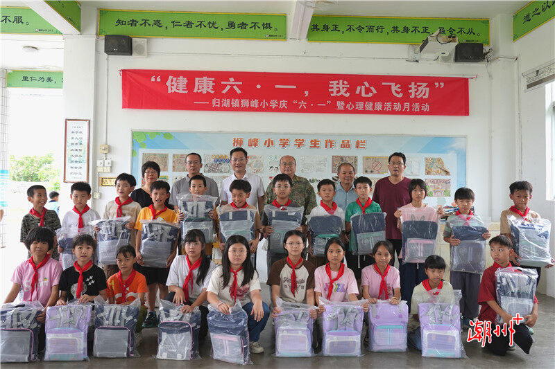 在歸湖鎮獅峰小學,張東一行走訪了解孩子們上課情況,勉勵孩子們要從小樹立遠大的人生志向,熱愛黨、熱愛祖國、熱愛人民軍隊,并代表軍分區向全校學生贈送書包,孩子們臉上洋溢著幸福的笑容。隨后,張東一行還與歸湖鎮領導、學校校長進行座談,詳細了解孩子們在校的學習生活以及當前學校教育情況,希望能為孩子們的健康成長創造更好的環境。
