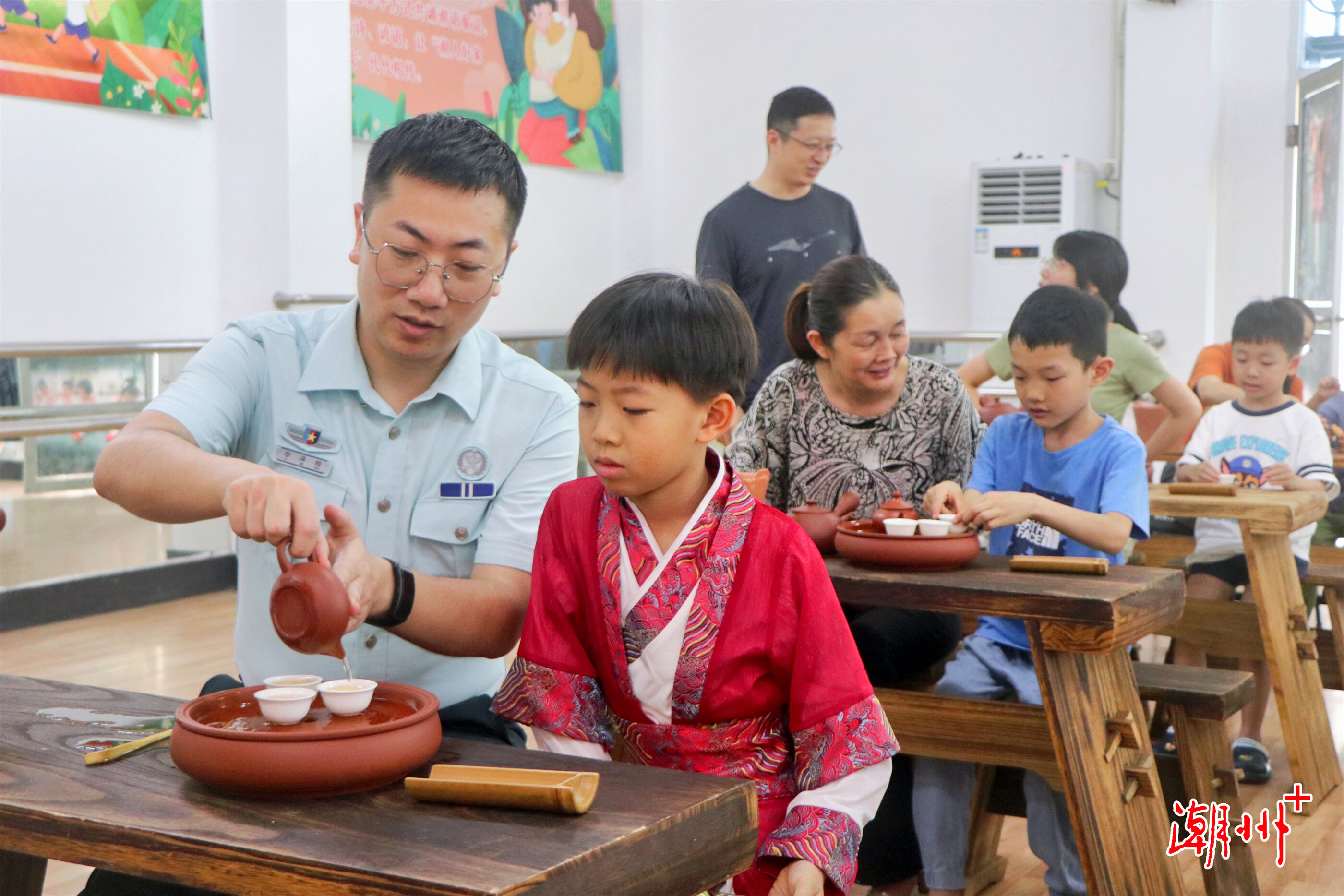 “六一”兒童節當天,潮州軍分區政治工作處組織營區內軍娃到潮州市婦女兒童活動中心體驗茶藝,“零距離”感受非物質文化遺產的獨特魅力,也為軍娃提供了交流互動的平臺,加深他們對父輩守護的第二故鄉的認識。