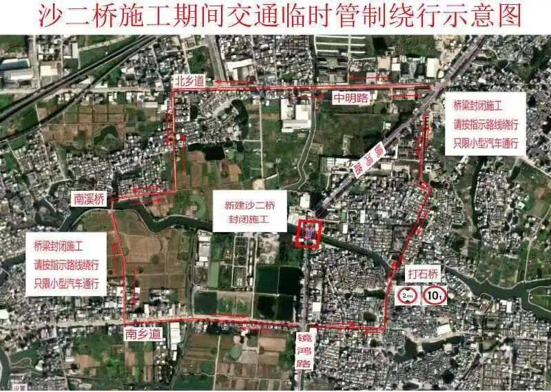 交通管制期間,敬請(qǐng)廣大市民群眾給予支持與配合,并提前規(guī)劃好出行路線,沙二橋北側(cè)來(lái)車可在鏡鴻路中明路口右轉(zhuǎn)經(jīng)金賈線(北鄉(xiāng)道)通過(guò)南溪橋駛?cè)肷硠⒕€(南鄉(xiāng)道),再通往鏡鴻路等道路行駛,也可在院前路路口經(jīng)院前路通過(guò)沙二打石橋駛?cè)肷硠⒕€(南鄉(xiāng)道),再通往鏡鴻路等道路行駛;沙二橋南側(cè)來(lái)車可在鏡鴻路南鄉(xiāng)道路路口左轉(zhuǎn)經(jīng)沙劉線(南鄉(xiāng)道)通過(guò)南溪橋駛?cè)虢鹳Z線(北鄉(xiāng)道),再通往鏡鴻路等道路行駛;也可在鏡鴻路南鄉(xiāng)道路口右轉(zhuǎn)經(jīng)沙劉線(南鄉(xiāng)道)通過(guò)沙二打石橋駛?cè)朐呵奥罚偻ㄍR鴻路等道路行駛。上述繞行路線只限小型汽車通行,大車禁止通行。非機(jī)動(dòng)車及摩托車車主請(qǐng)盡量往北鄉(xiāng)道等方向進(jìn)行繞行,確需于2024年7月23日至2025年3月24日行駛進(jìn)入該限制通行路段的,需配合現(xiàn)場(chǎng)執(zhí)勤及工作人員指揮,并按現(xiàn)場(chǎng)交通指示指引,有序通行。