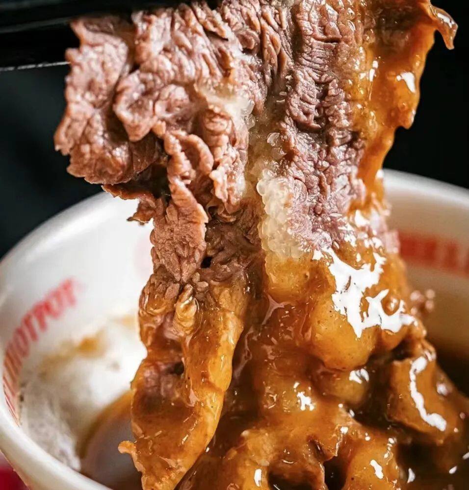 潮州人對(duì)吃的講究,也在牛的身上發(fā)揮得淋漓盡致。第一次拿到潮州火鍋店的菜單,你可能會(huì)一臉懵,什么:脖仁、吊龍、腳趾、五花趾、嫩肉、胸口膋等,第一次知道牛身上的每一個(gè)部位都有專屬的姓名。真真是將“庖丁解牛”的精神運(yùn)用到了極致。而只有吃過潮州的牛肉才知道什么叫做“鮮”:從屠宰到餐桌最短只經(jīng)過3小時(shí),肉仿佛還是鮮活的。刀工要求精細(xì),控制在十幾秒能熟的程度,涮過后蘸一口特制的沙茶醬,獨(dú)屬牛肉的鮮甜口感同時(shí)釋放出來,如在舌尖跳舞。哪怕看起來極樸素的潮州牛肉丸,背后也有許多細(xì)致功夫:是最新鮮的牛肉,經(jīng)人工捶打而成,中間過程不能停歇,且要隨時(shí)觀察牛肉的狀態(tài),捶打時(shí)間控制得剛剛好,才能保證顆顆牛肉丸爽脆彈牙。再是煮丸子的湯,是用牛肉、牛骨熬成,原湯原食,雙倍濃郁……