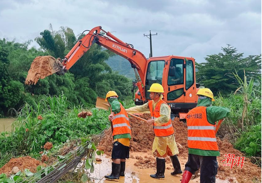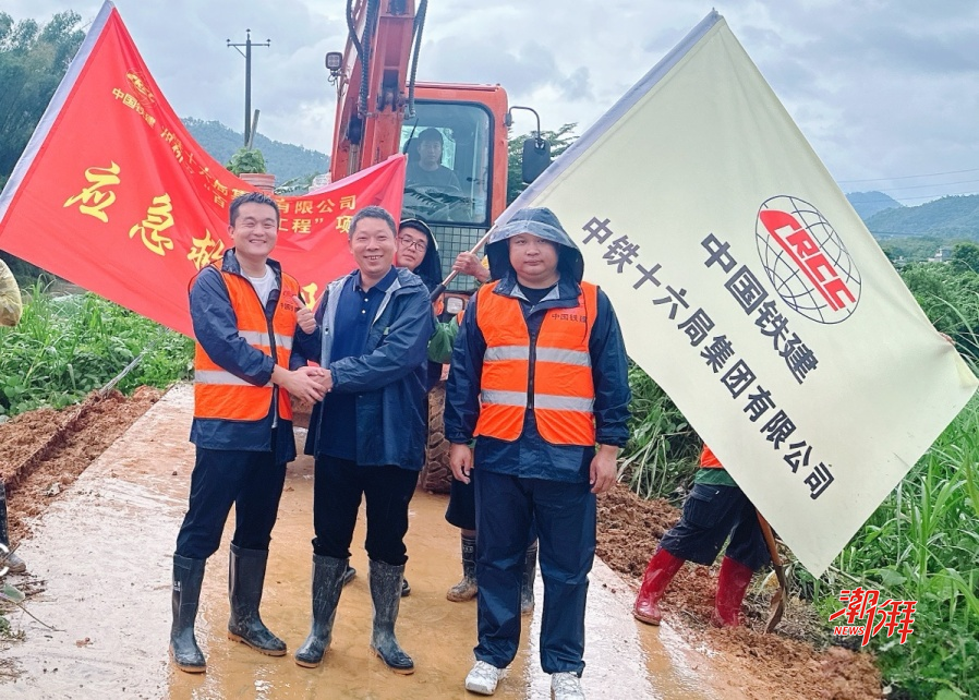 7月26日,意溪鎮(zhèn)桂坑水小陂堤段出現(xiàn)30米洪水漫堤滑塌。面對險情,中鐵十六局集團第一時間響應號召,聯(lián)合意溪鎮(zhèn)、武警部隊、廣東水電三局、廣東水電二局、建工潮投、中交四航局、湘橋區(qū)消防救援隊等單位,出動人數(shù)近千人次和各類機械車輛40余臺,連續(xù)奮戰(zhàn)30多個小時,日夜兼程搶修堤防,進行“拋石”加固,順利完成封堵,筑起了一道守護百姓安全的堅強防線。
