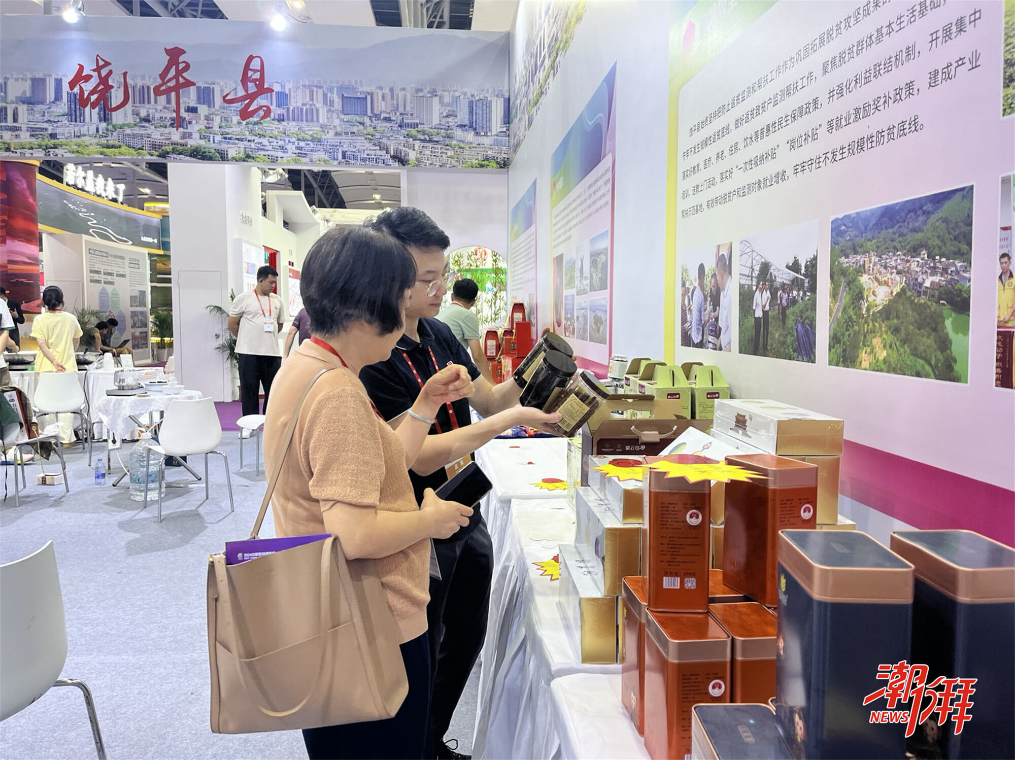 在廣東省饒平商會的支持下,此次饒平縣積極籌備、精心策劃參展工作,布置了獨具特色的饒平展區,展出了水產品、單叢茶、牛肉丸等120多個縣域特色產品和扶貧產品。展區還設置了蘇區發展歷程、鄉村振興、脫貧攻堅、新型城鎮化建設等四大板塊,全方位展示蘇區饒平現代化建設新面貌和“百千萬工程”建設成果。