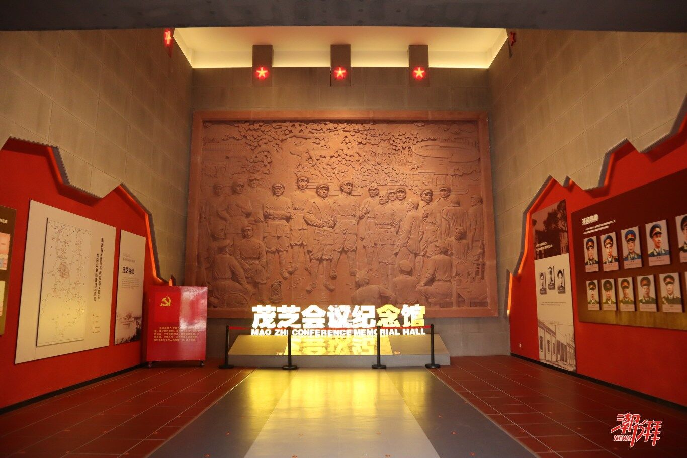 “全德學校”正對面就是茂芝會議紀念館。走進紀念館里,首先映入眼簾的是一幅氣勢恢宏的浮雕畫,每個展廳用文字、圖片及革命年代保存至今的作戰工具、書信、衣物等實物,詳細介紹了“茂芝會議”的時代背景、具體過程和最終結果等內容。講解員郭文瑩介紹,紀念館平時經常會有企業學校組織員工學生到館里參觀學習這段紅色歷史,節假日前來參觀的游客更是絡繹不絕。