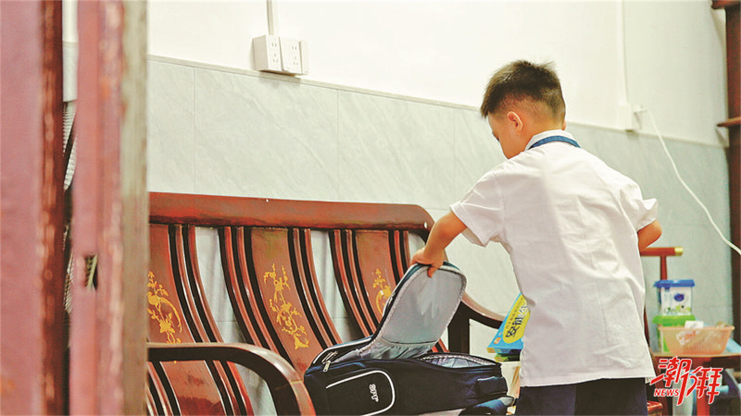 收拾書包上學去。潮州日報全媒體記者 謝鋼凱 蔡鍶桐 攝