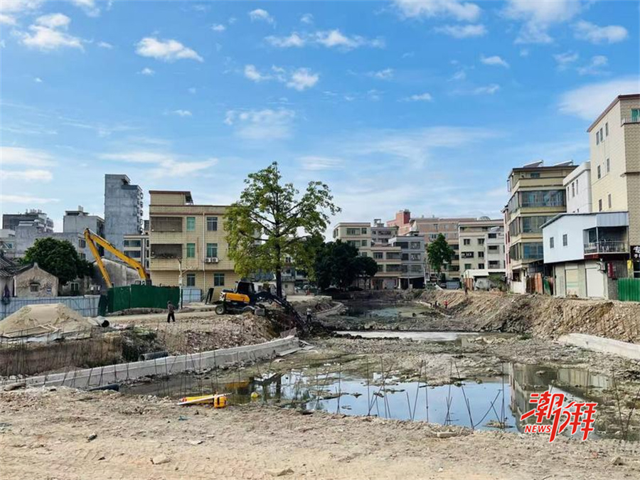 蓮云村黨建公園和面前溪提升工程項目施工現場。(潮州日報全媒體記者 陳瑩 攝)