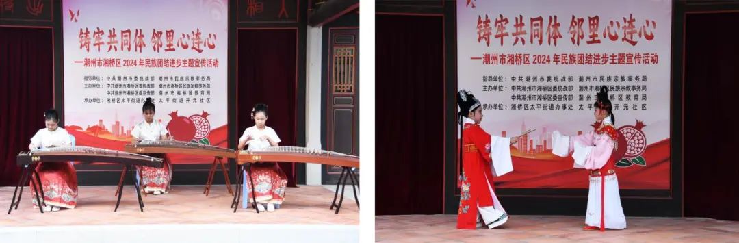 悅耳動聽的古箏彈奏、唱腔飽滿的潮劇演繹、剛勁有力的武術表演……在隨后的文藝匯演上,器樂、潮劇、武術、獨唱等形式多樣的精彩節目輪番上演,現場氣氛熱烈、掌聲不斷?!靶聲r代黨的民族工作的主線是什么?”“民族‘三交’是指哪‘三交’?”文藝匯演中還穿插了有關民族團結的知識搶答互動,現場群眾積極參與、爭相搶答,不斷加深對黨的民族政策的理解。