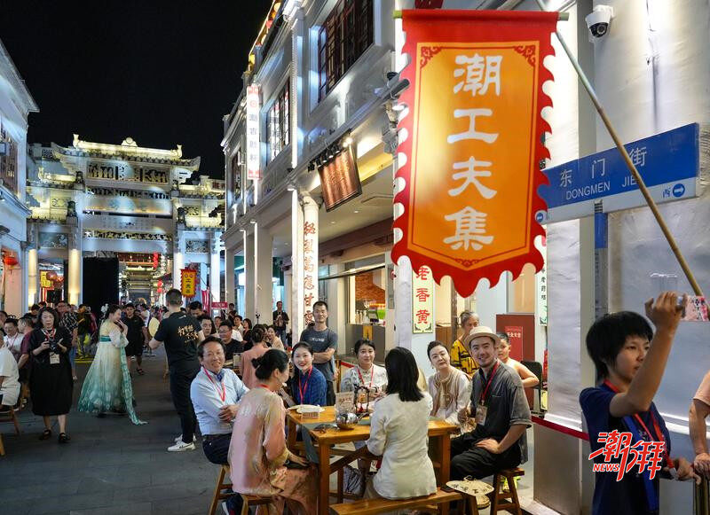 10月18日晚,潮州古城東門街燈火通明,歌聲嘹亮,人流如織,2024潮州工夫茶大會系列活動之潮·工夫集——圍爐觀茶音樂茶會在這里舉行?;顒泳劢共琛⒁魳泛头沁z,通過沉浸式音樂茶會的形式,還原“家門口”喝茶的場景,邀請市民游客煮茶品茗,把盞論道,領略潮州工夫茶文化的深厚底蘊。