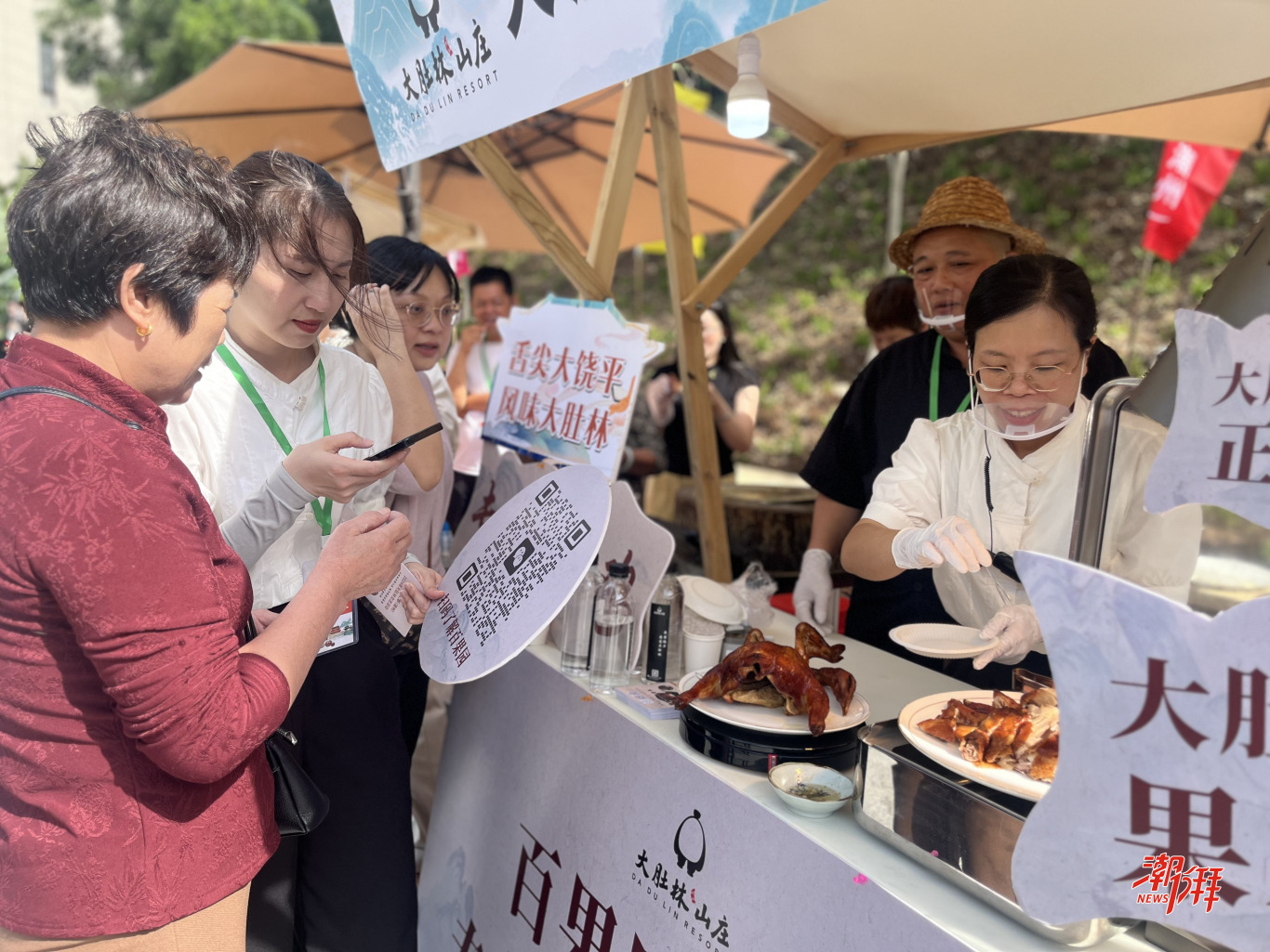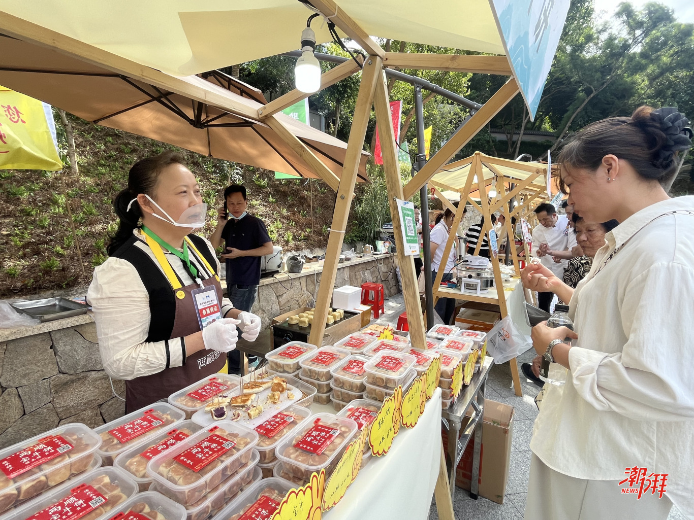 “快來試試饒平寶斗餅。”“新鮮晾曬的浮山柿餅!”在潮州非遺、潮州美食展示區,錢東鹽焗雞、柘林水產、高堂菜脯、浮山柿餅……琳瑯滿目的美食讓游客們紛紛駐足品嘗購買。負責寶斗餅展位的詹女士說,“希望可以借此活動,展示饒平非遺、推介潮州美食,讓大家了解饒平農副產品的特色與優勢。”