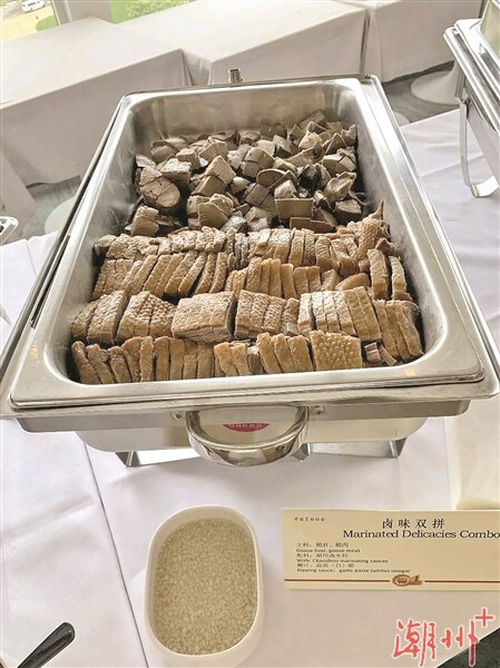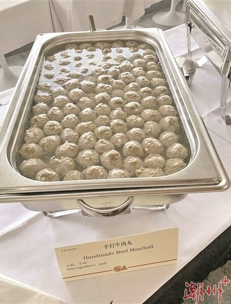 美食展中,我市廚師制作了魚飯、鵝片拼鵝肝、牛肉丸、蝦棗、白灼青菜共5道菜品。這些菜品的食材全部來自潮州本土,經過潮州菜師傅的精心制作,變成了一道道的美味佳肴。
