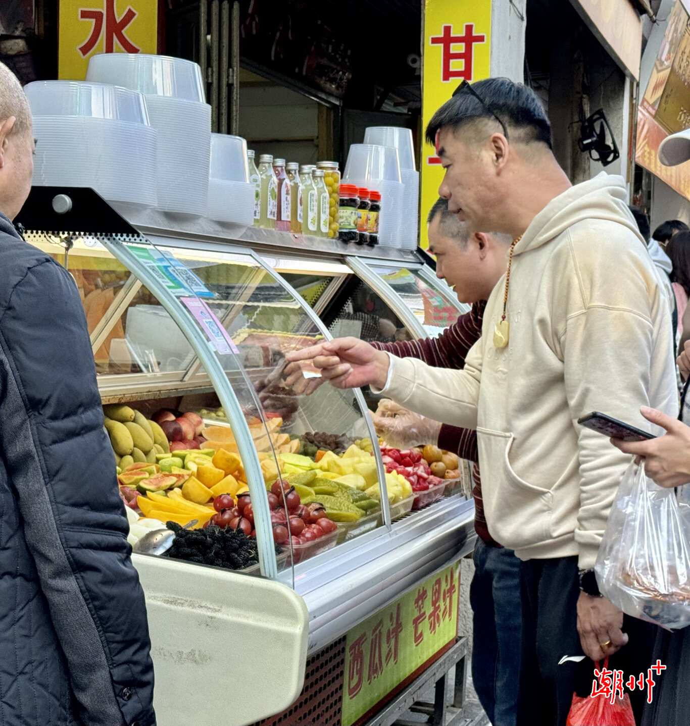 潮州牛肉丸、腸粉、蠔烙、咸水粿、春卷、鹵鵝、甘草水果……長達兩公里的牌坊街從南到北,沿途數十種潮州美食,吸引著八方來客?!暗弥敝萑脒x‘世界美食之都’,我們趁著春節長假趕緊與家人前來感受潮州美食的魅力?!庇慰忘S依淳不惜跨越400多公里從福州來到潮州,不到半天,她已經先后品嘗了鴨母捻、春卷、牛肉丸等數道小吃,手里還提著老香黃、老藥桔等潮州特產,準備帶回家品嘗。“逛逛古城,品嘗潮州地道美食,感覺既輕松又愜意。”黃依淳說。
