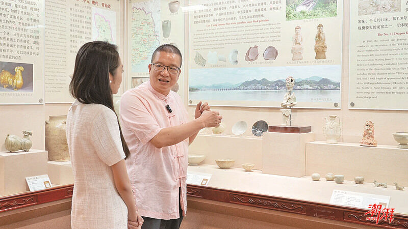 頤陶軒潮州窯博物館的展廳里,陳列著潮瓷產業各個主要歷史時期的代表性瓷器。其中一尊殘缺的白瓷佛像,蘊含著宋代筆架山潮州窯的重要信息。