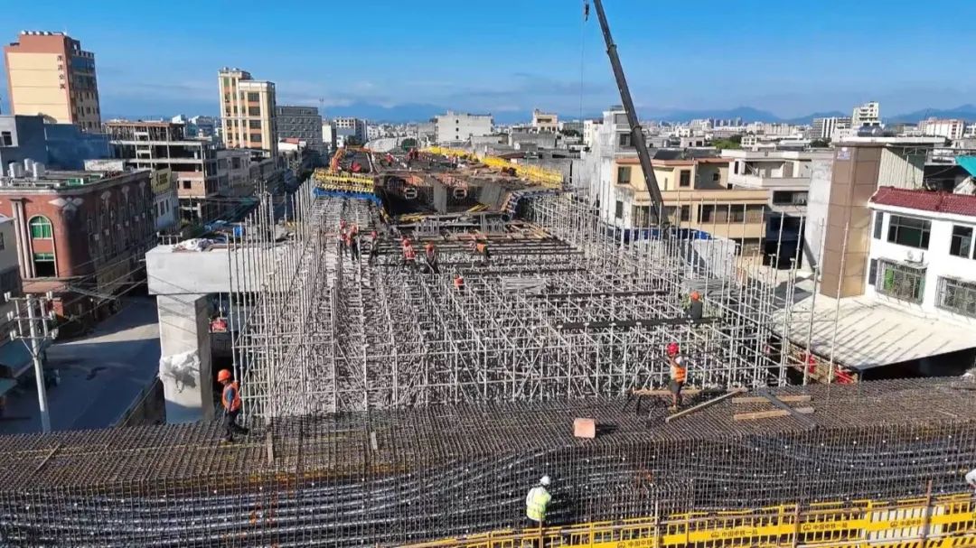 “施工過程中,我們結合潮州地區地質情況,樁基施工采用反循環鉆施工工藝,既提高了工效,又減小了對施工周邊的擾動及影響。連續梁施工采用菱形掛籃配套全封閉兜底防護施工工藝,確保了跨路施工行車安全,道岔連續梁采用承插型滿堂支架施工工藝。”中鐵一局粵東城際鐵路8標二工區副總工程師黃漢超表示。