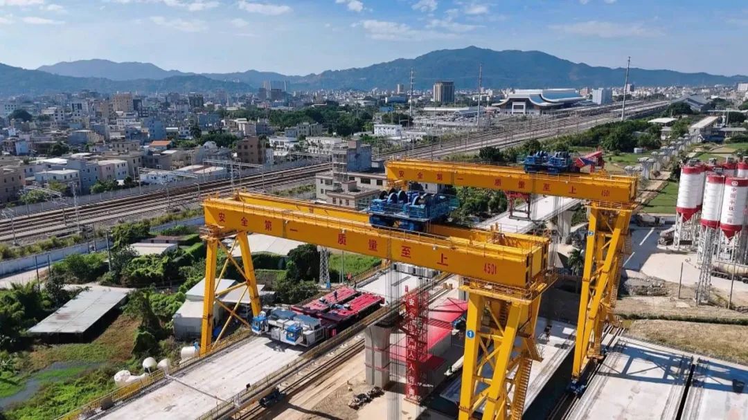 日前,由中鐵一局承建的粵東城際鐵路潮州段首榀箱梁的成功架設,標志著粵東城際鐵路潮州段全面進入箱梁架設施工階段。