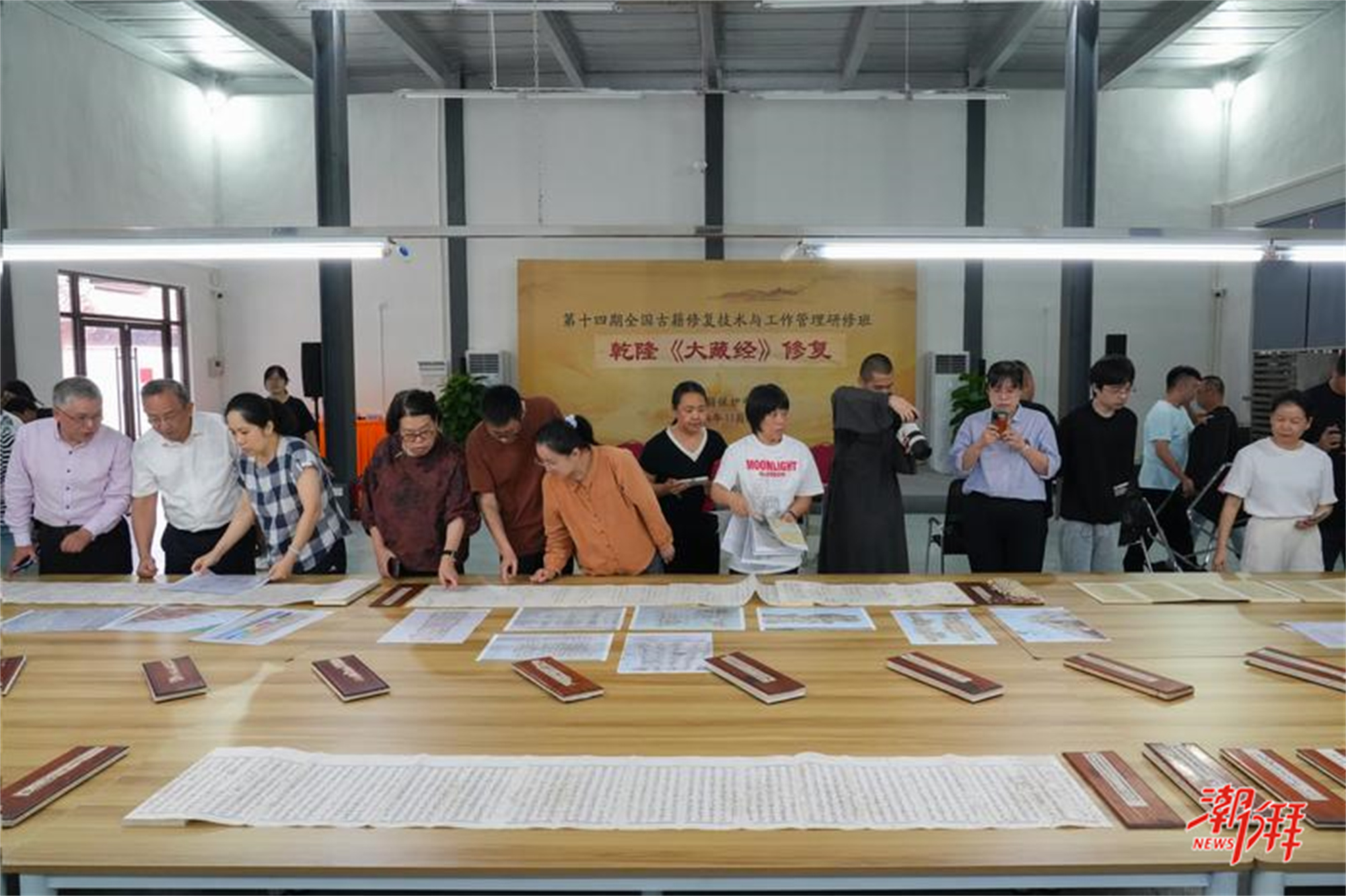 11月14日,由國家古籍保護中心主辦,廣東省古籍保護中心承辦,潮州市文化廣電旅游體育局協(xié)辦的“第十四期全國古籍修復技術(shù)與工作管理研修班”在潮州開元寺迎來結(jié)業(yè)儀式,現(xiàn)場展示研修班修復開元寺乾隆《大藏經(jīng)》取得的階段性成果,共完成36卷(冊)重度和瀕危破損的乾隆《大藏經(jīng)》修復。