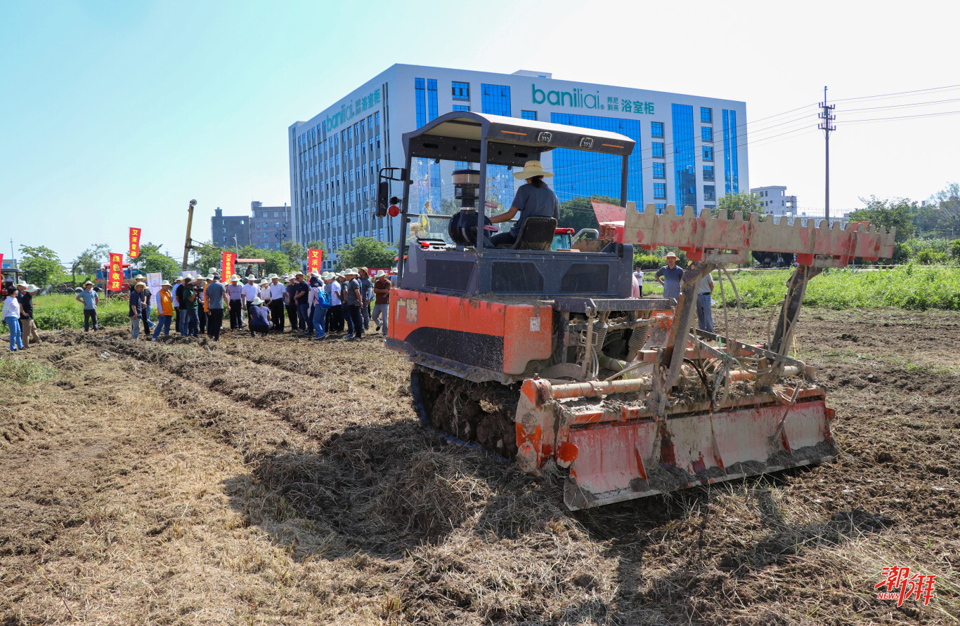 潮安區鳳塘鎮撂荒地機械化復耕作業演示。