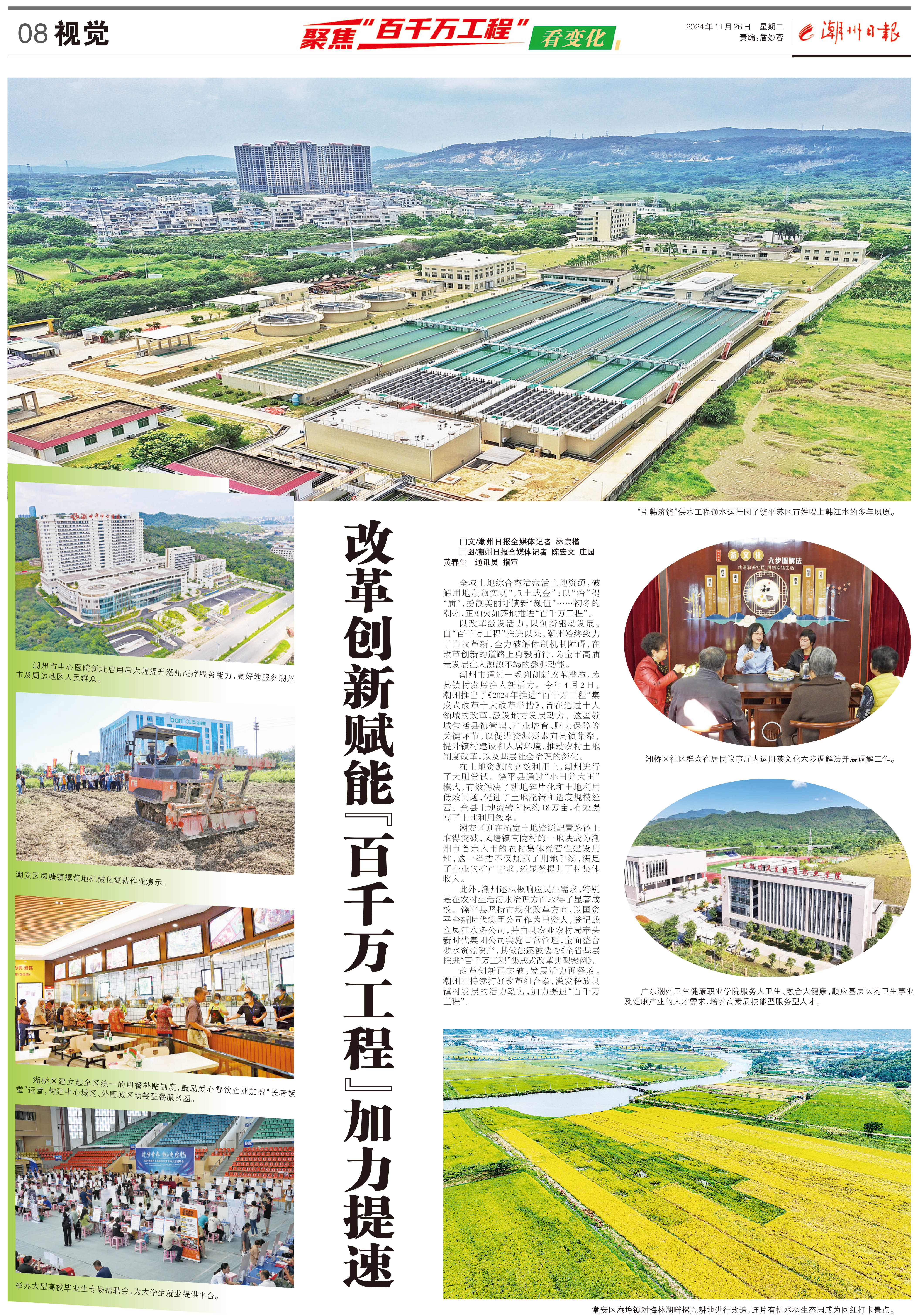 改革創新再突破,發展活力再釋放。潮州正持續打好改革組合拳,激發釋放縣鎮村發展的活力動力,加力提速“百千萬工程”。