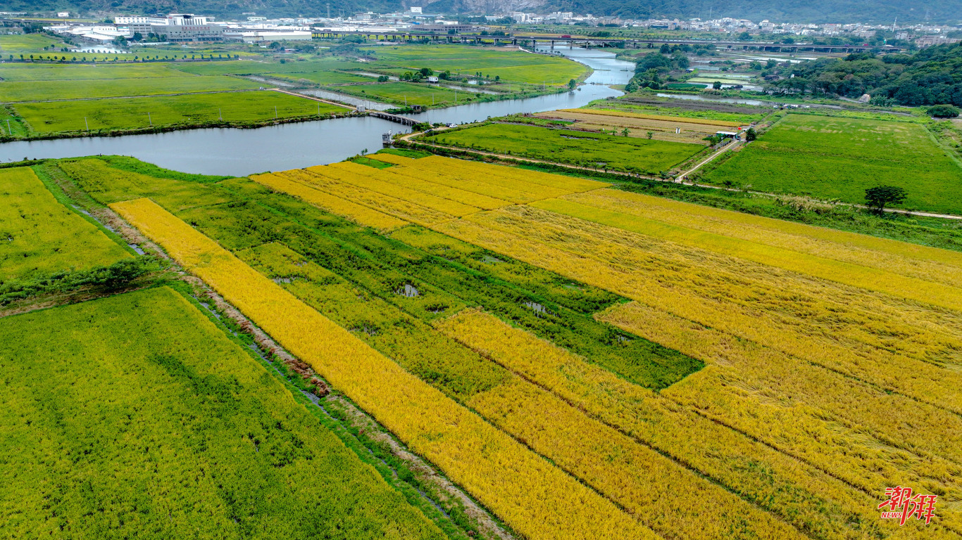 潮安區庵埠鎮對梅林湖畔撂荒耕地進行改造,連片有機水稻生態園成為網紅打卡景點。