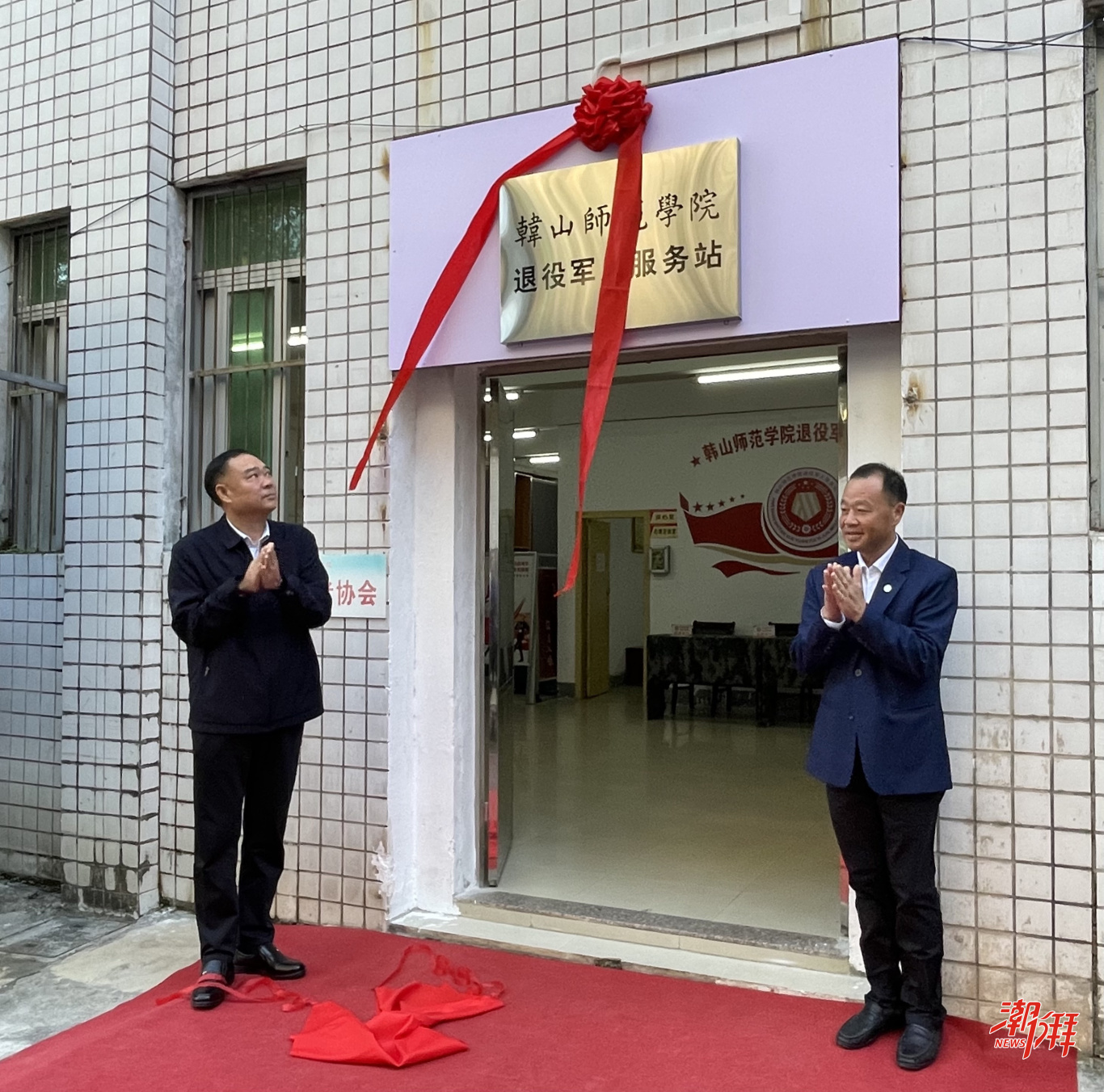 領(lǐng)導(dǎo)嘉賓為韓山師范學(xué)院退役軍人服務(wù)站揭牌。