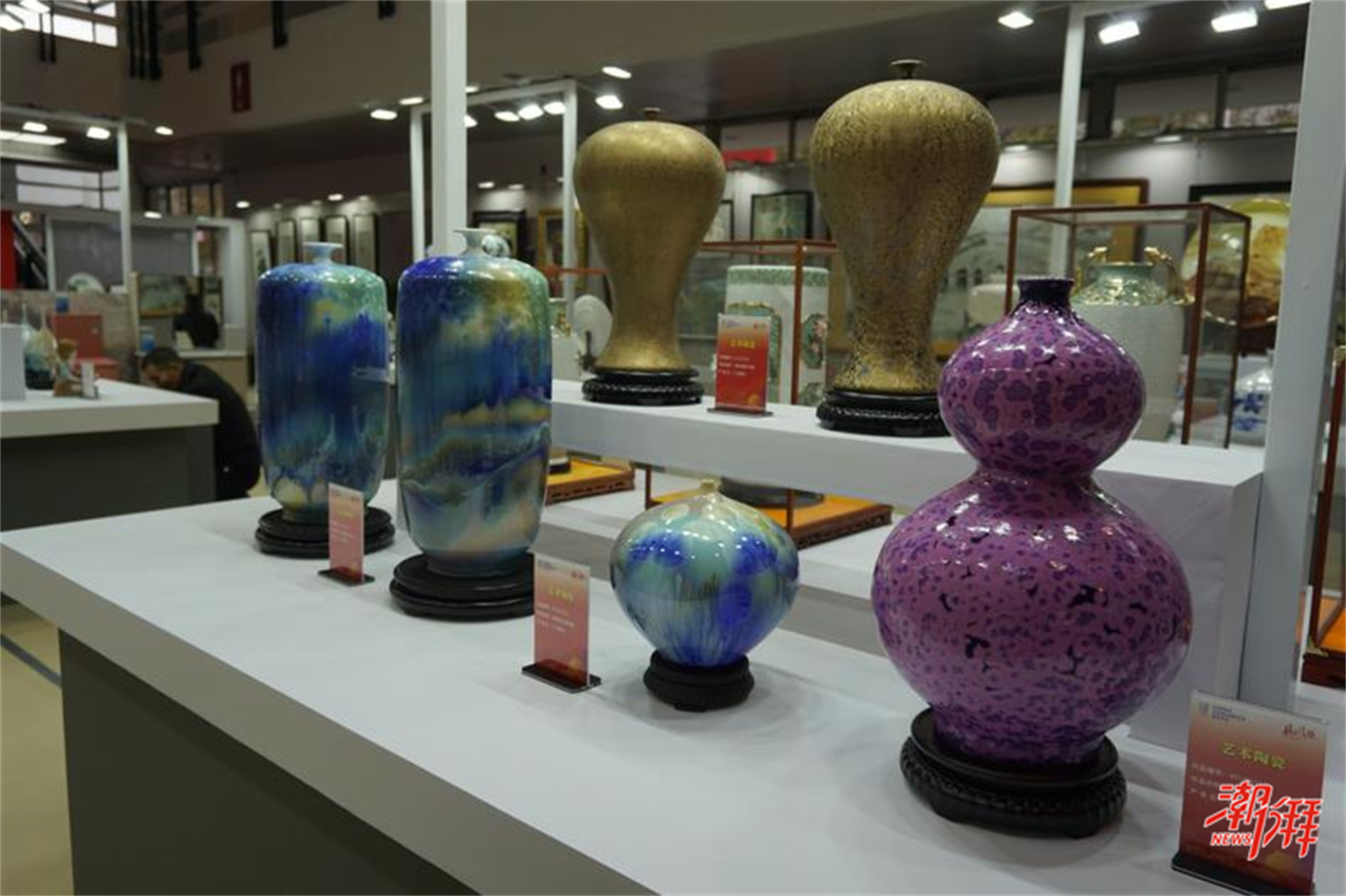 作為展覽亮點之一,中國陶瓷工業協會聯合中國收藏家協會在展會期間共同舉辦“成就與輝煌”當代國際陶瓷藝術精品聯展。陳仰中、吳維潮、謝華、吳渭陽、章燕明、鄭金發、吳淑云、張瑞端等來自潮州的中國陶瓷藝術大師、中國工藝美術大師攜陶瓷精品新作參展,展現出“大國工匠”高水平技藝。