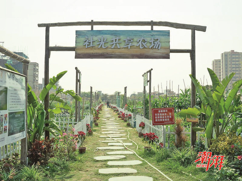 沿著示范帶前行,目之所及處處是景。在社光村共享農(nóng)場,一排排整齊的竹籬笆十分別致。菜地里,黃瓜、番茄、辣椒等各類果蔬長勢正旺,市民游客在園地里體驗(yàn)親子農(nóng)耕之樂,在亭臺茶座品茗閑談。