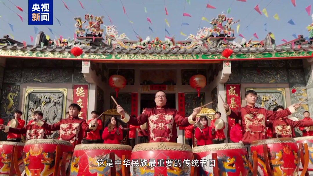 ▲“潮州音樂(lè)(潮州大鑼鼓)”在視頻7′15″-7′29″處亮相(來(lái)源:央視新聞)